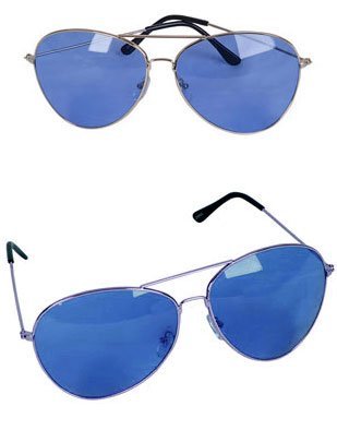 - Retro Blue Lens Silver Frame Aviator Rock Star Glasses