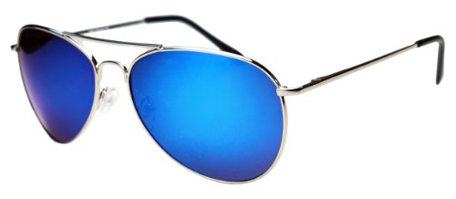 Aviator Fashion Sunglasses Silver Frame Blue Lens for Men and Women