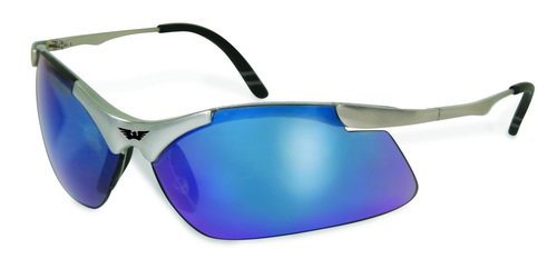 LIGHTNING BLUE MIRROR LENSES METAL FRAMED SAFETY GLASSES ANSI Z87.1+ Overviews